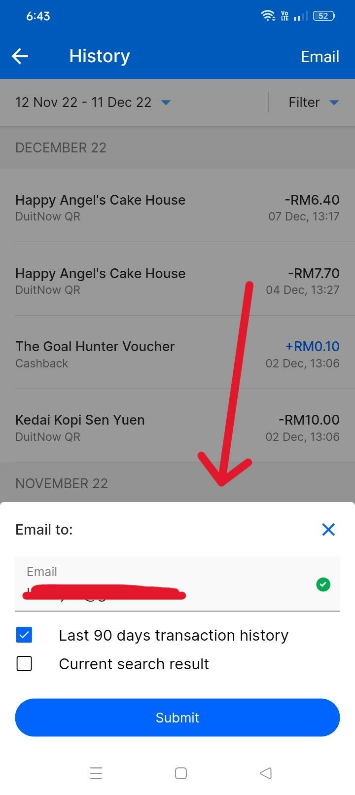 Step 3: Submit and Touch ’n Go will email the statement to you.